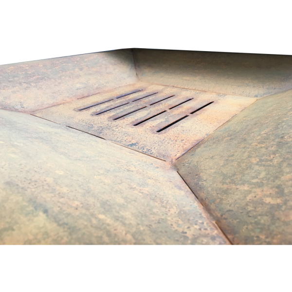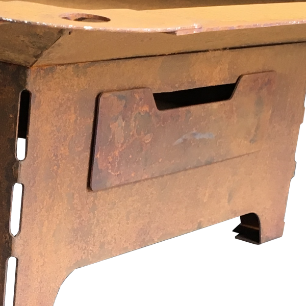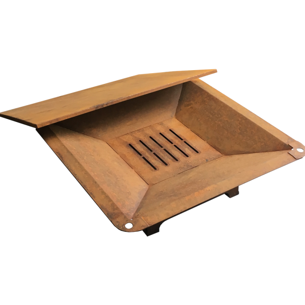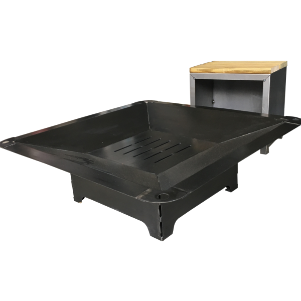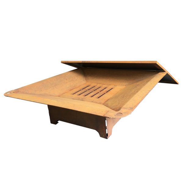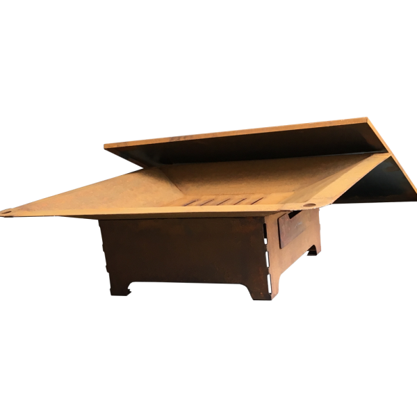 Brasero bas en acier, finition brut ou rouille.