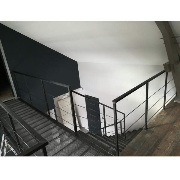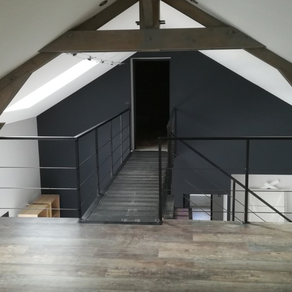 Ensemble escalier et passerelle en métal brut, sur mesures.