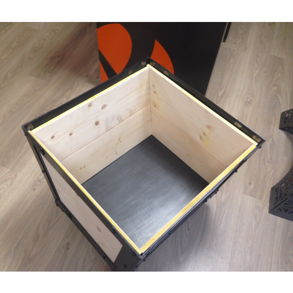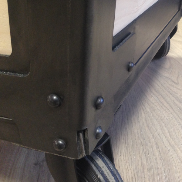Chariot à bûches style wagon de mines.