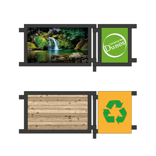 Les cadres peuvent recevoir de la tôle finition rouille ou laquée, de la tôle galvanisée avec décor imprimé sur vinyle adhésif, du bois.