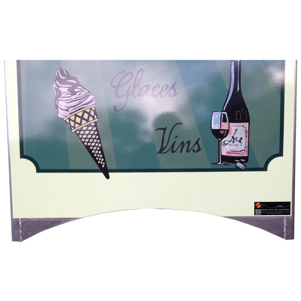 Chevalet en acier brut, se replie pour un transport facilité. Sticker impression numérique recto verso.
