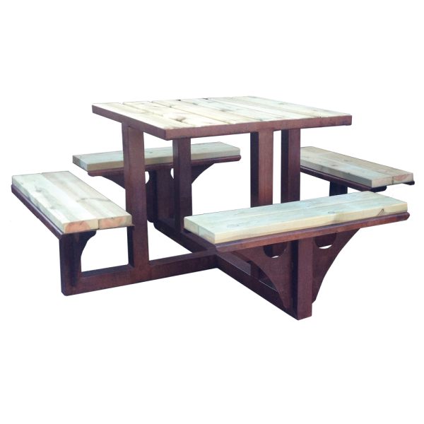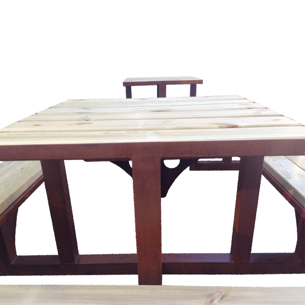 Table 4 places en bois et acier, finition rouille naturelle stabilisée.