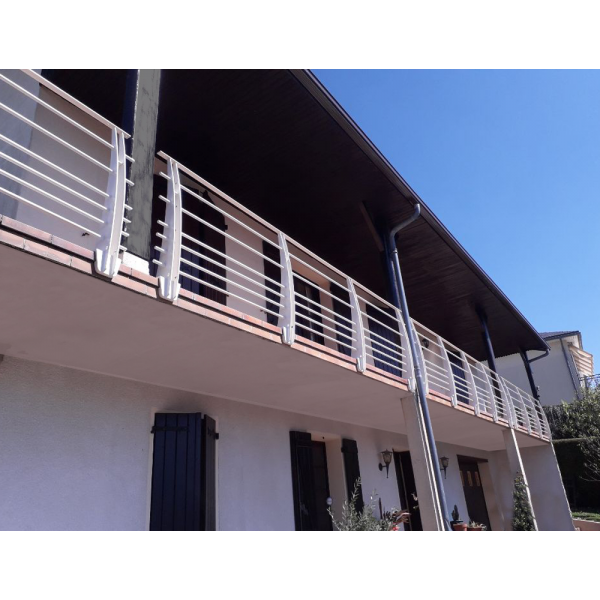 Garde corps avec poteaux en voile double et barreaudage horizontal