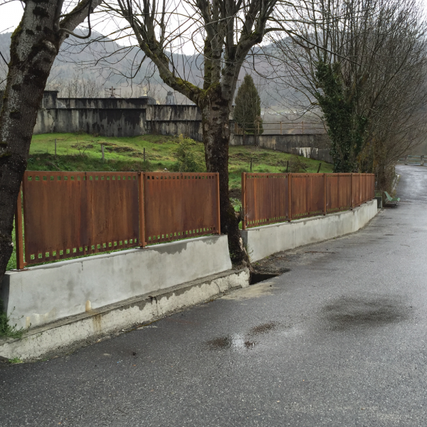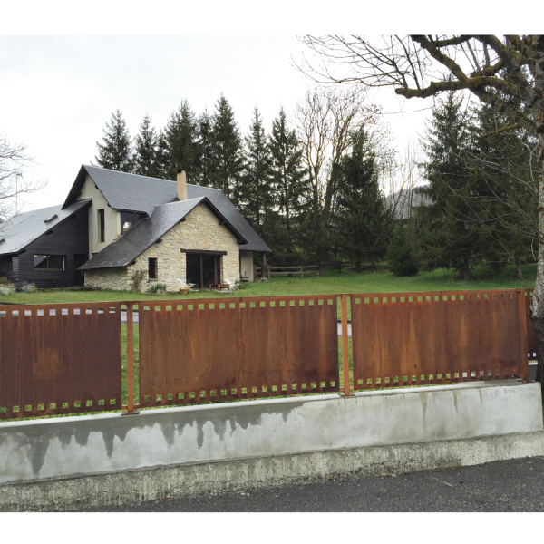 Protège subtilement des regards tout en restant léger visuellement grâce à l'aspect vivant de la finition rouille naturelle.