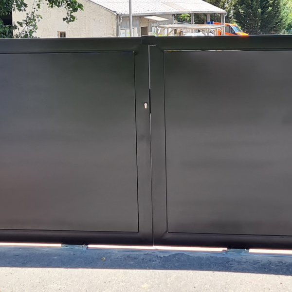 Portail métal finition thermolaqué noir.